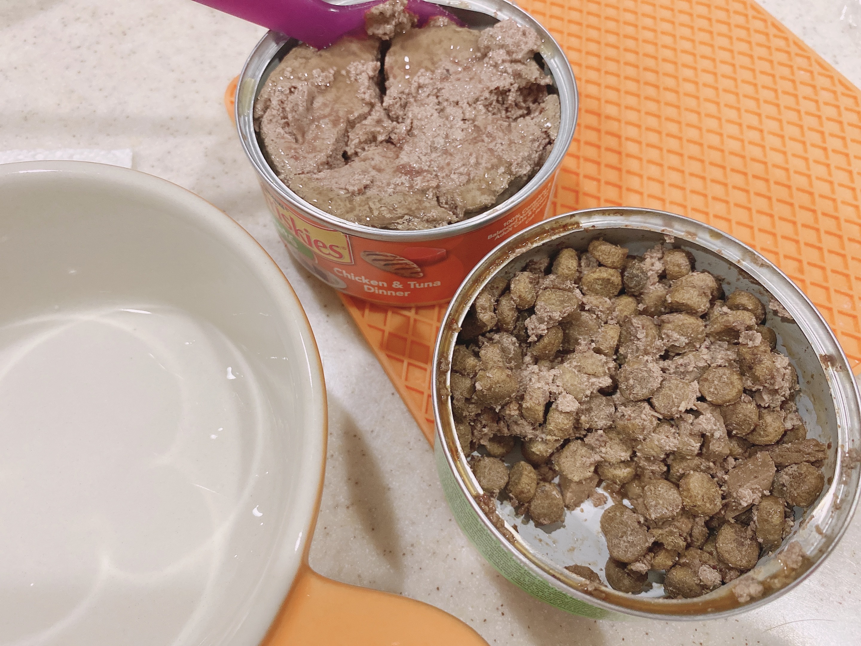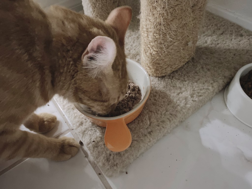 I give wet food and dry food to my buddy and I have a little bit different than other people because I will mix two different kinds of wet food and combine with dry food. This way I can make sure buddy absorbs various types of nutrition. Buddy used to eat wet food and dry food in the animal shelter, so he loves this way. But this method is not for every cat and you need to know what your cats need!!