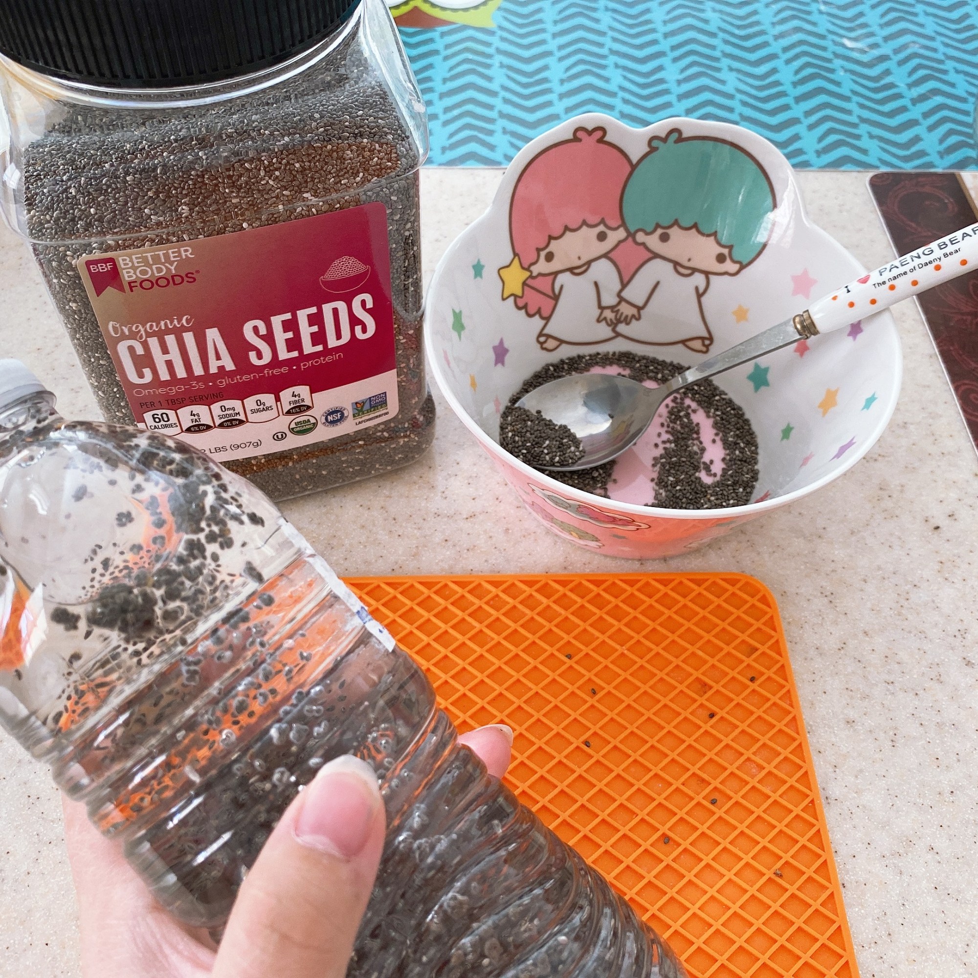 Brown rice 25%, fried pork 15%, fried Broccoli 35%, plus 1 liter of water with chia seed.